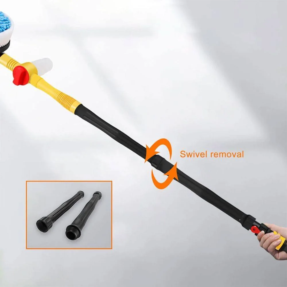 - فرشاة غسيل سيارات سهلة التوصيل بخرطوم الحديقة، مزودة بصمام تشغيل/إيقاف للتحكم في تدفق الماء عبر رأس الفرشاة.